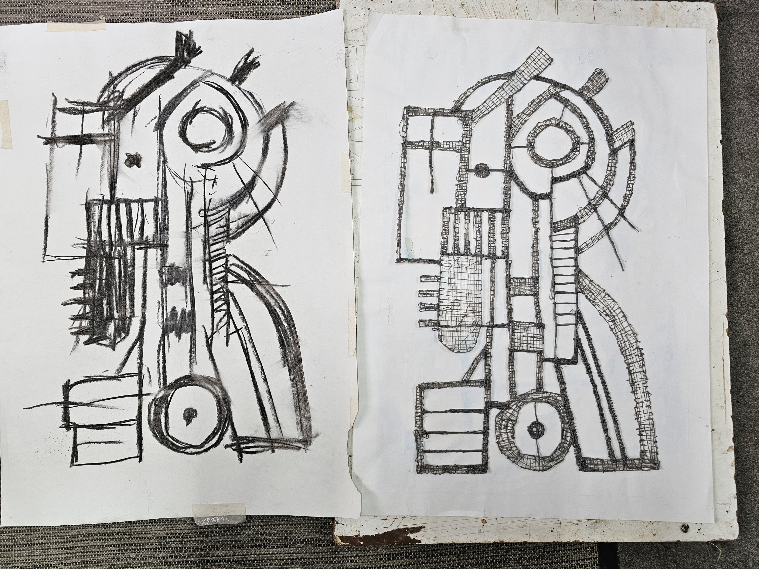 Rough sketches turning into 3d sculpture.