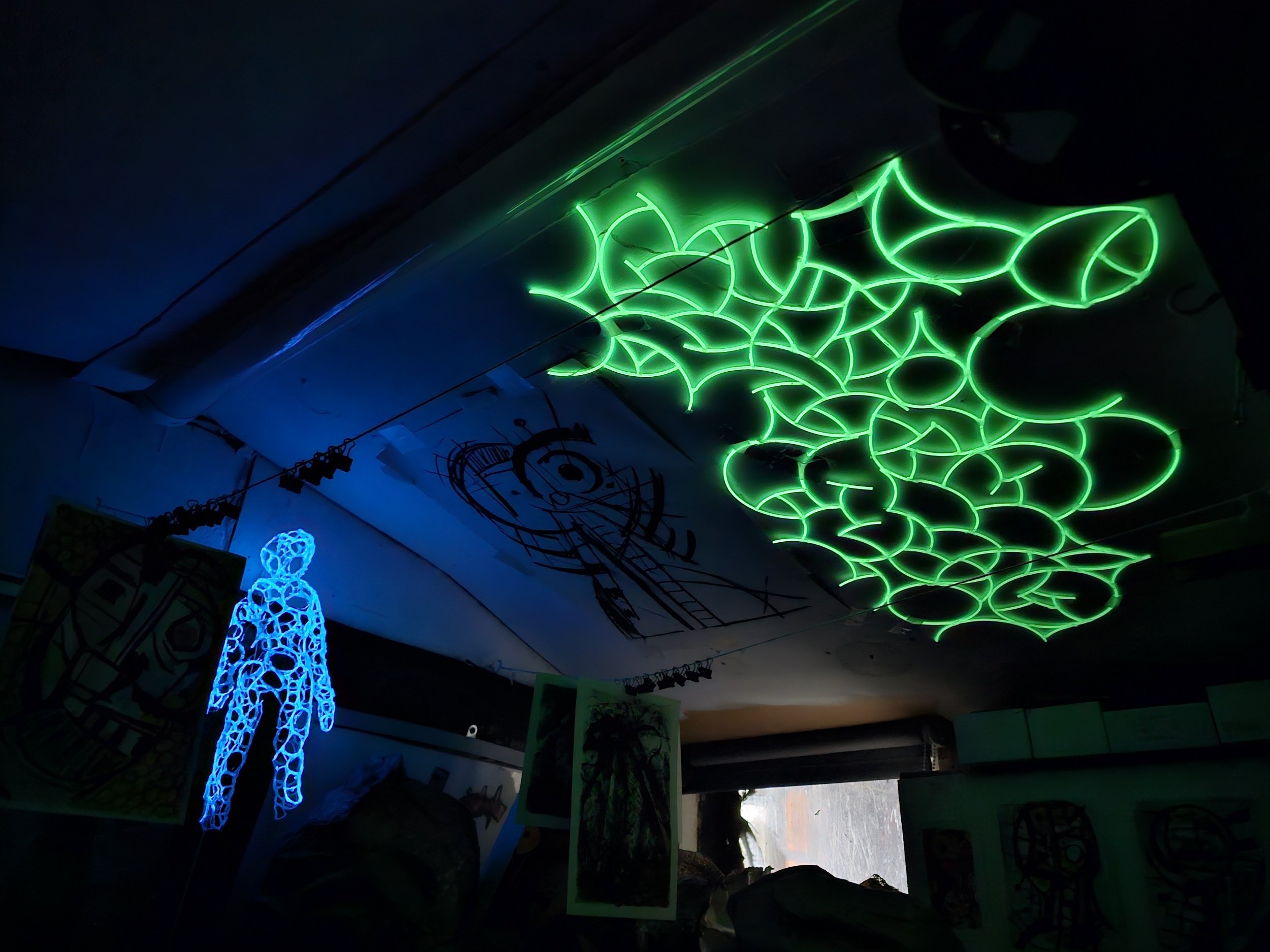I have a few glow in the dark experiments hanging around the studio, forgotten about until I turn the lights off.