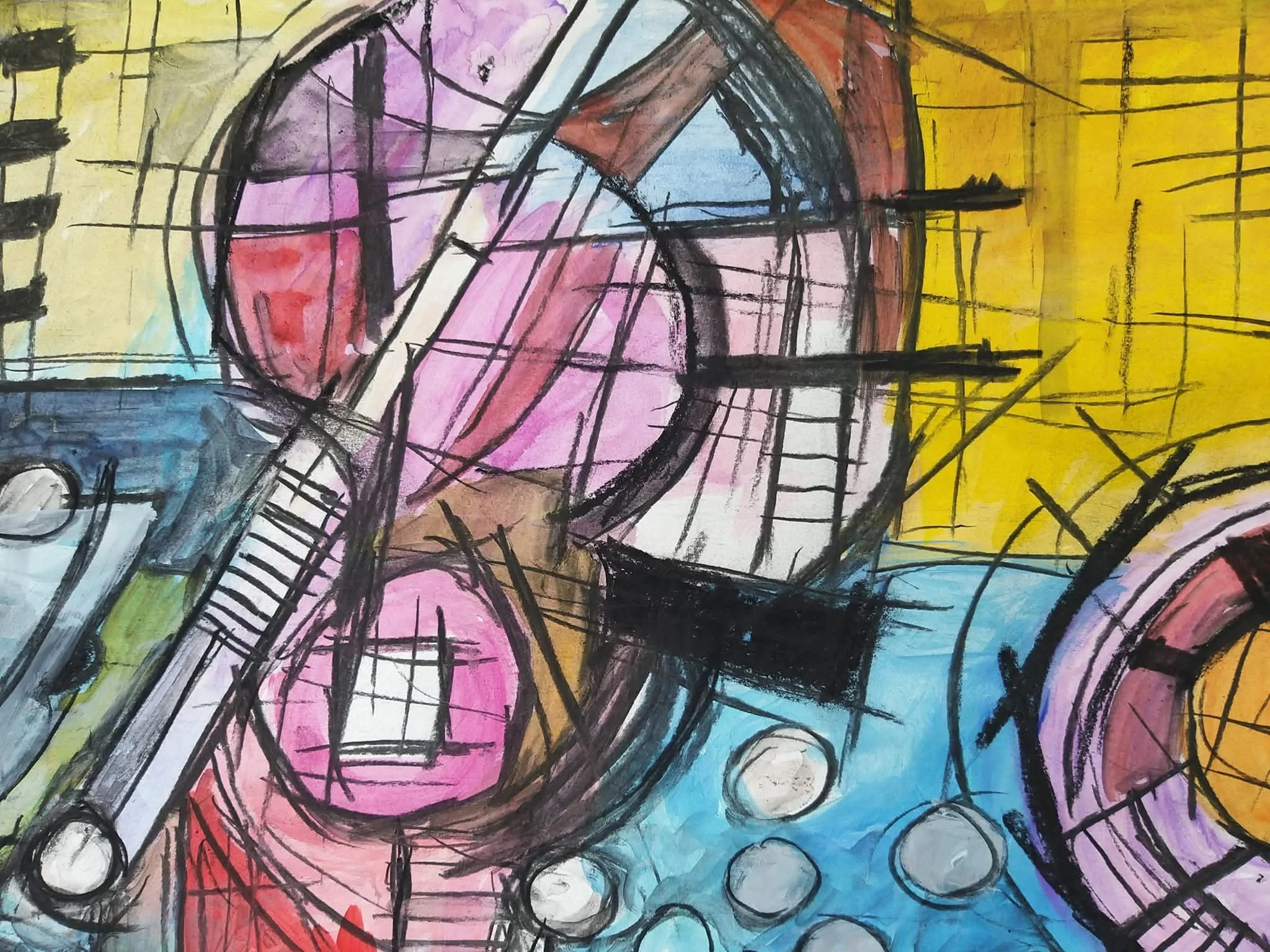 Acrylic paint and charcoal on paper.